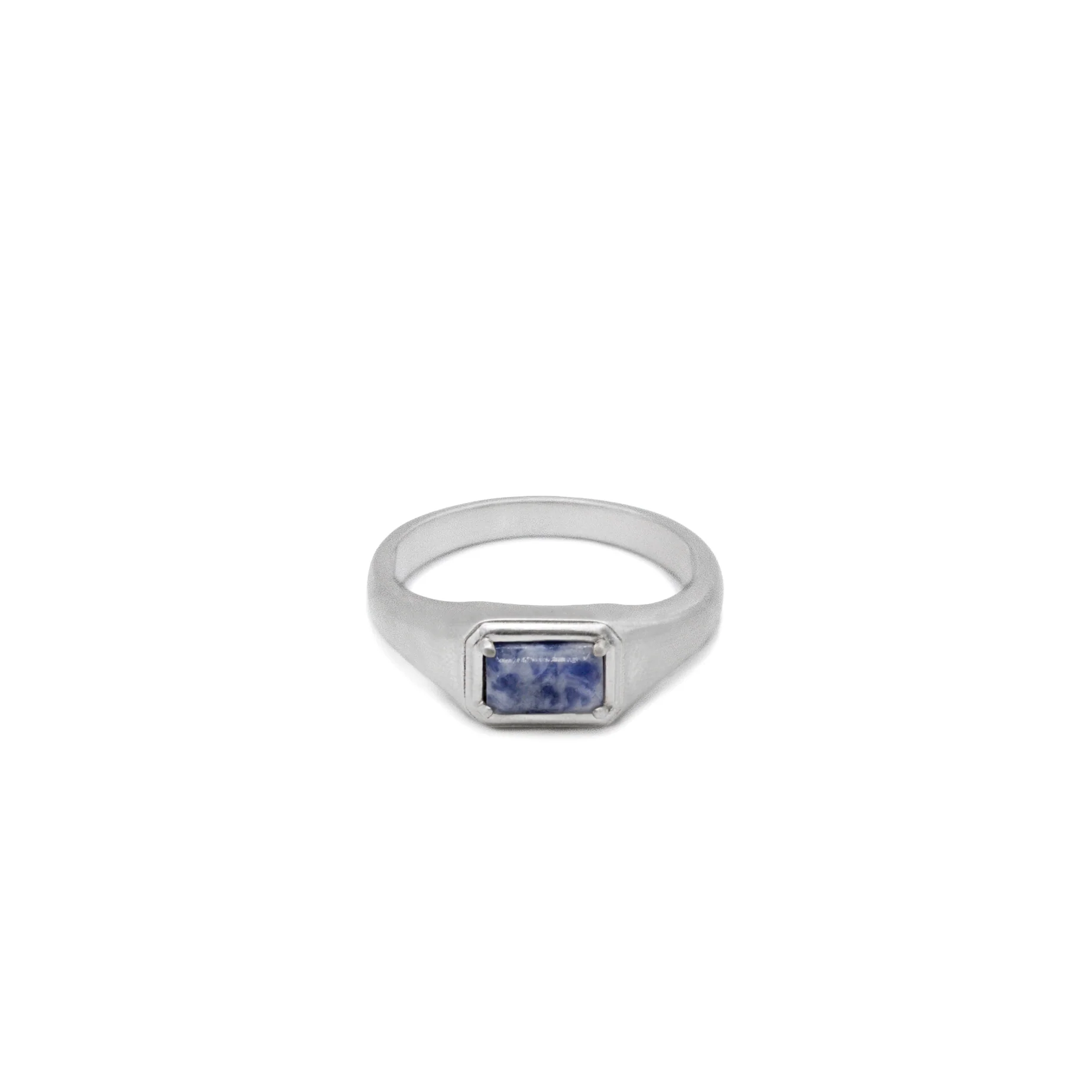 The Silver Blue Jasper Ring is a rectangle shaped ring with a Blue Jasper stone representing the sky and ocean. The ring is made from 925 Sterling Silver and is stamped verifying its quality.